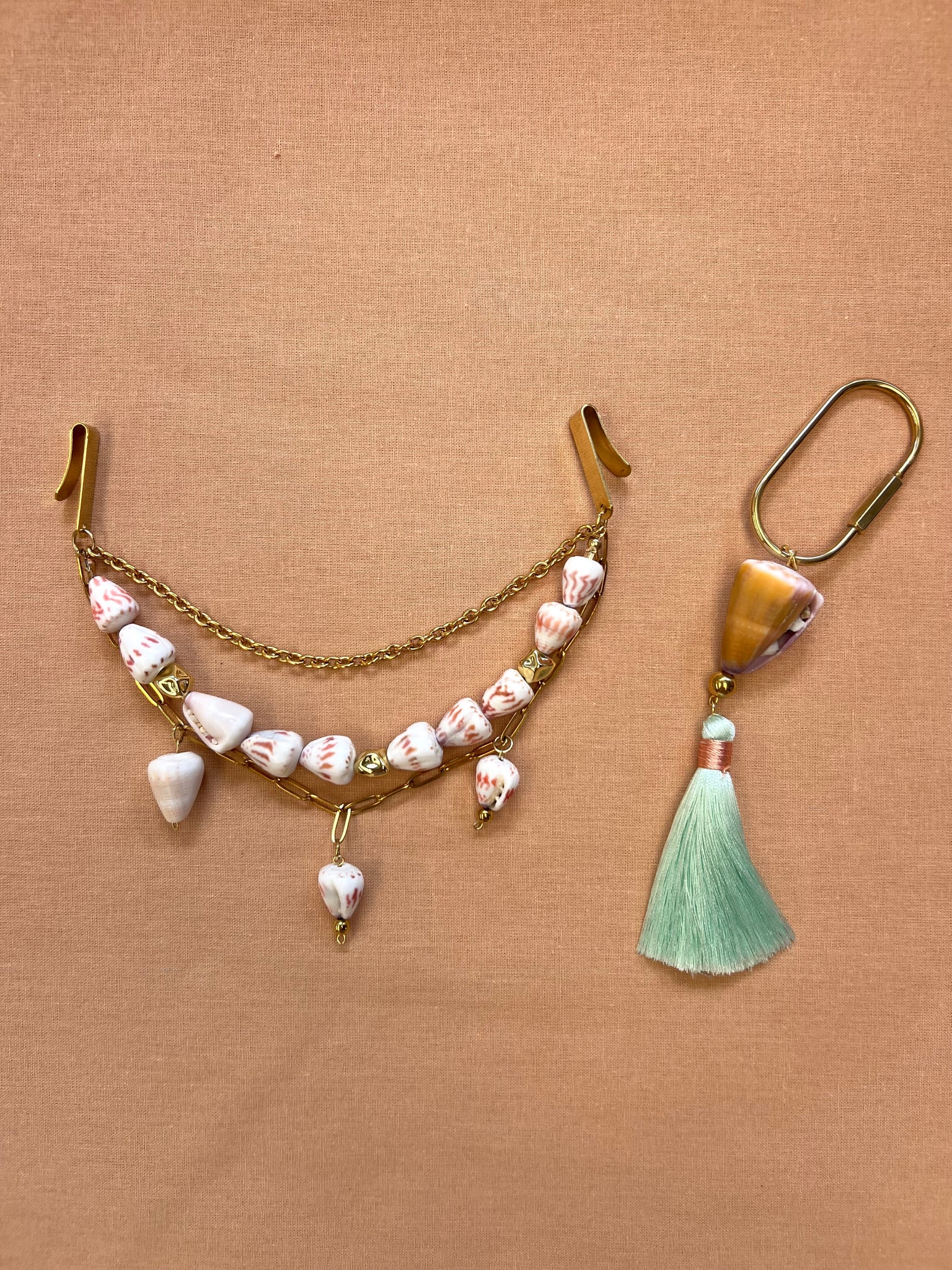 The Shell bag charm comes with two adjustable clips and a key Holder with tassel.
